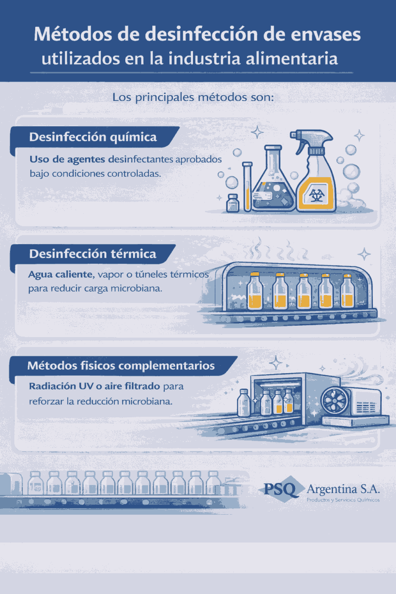 La desinfección de envases de alimentos es un punto crítico en la industria alimenticia cuando se busca garantizar la inocuidad del producto y evitar pérdidas. En muchos casos, los problemas no se originan en la formulación ni en el proceso de elaboración, sino en fallas vinculadas a la higiene del envase antes del llenado: